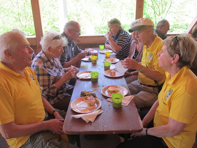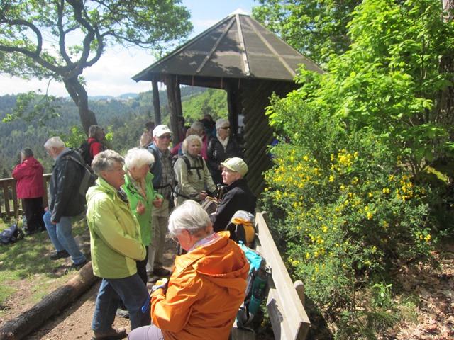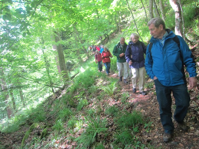An unserer traditionellen Pfingstwanderung im Elsaß nahmen 29 Wanderer teil. Bei Sonnenschein, aber kühlen Temperaturen ging es mit dem Bus durch das Höllental hinab nach Freiburg und weiter über Colmar zu unserem Ausgangspunkt „Trois Epis“ (Drei Ähren) – ein bekannter Luftkurort in der Elsaß-Region „Haut-Rhin“ (Oberrhein) – , wo unsere elsässischen Wanderfreunde – 30 an der Zahl – mit dem Wanderführer Jean Dilmetz schon auf uns warteten. Es war eine herzliche Begrüssung. Unsere Partnerschaft mit dem Vogesenclub Selestat besteht nun schon seit 13 Jahren. Die Wanderung führte durch urige Bannwälder auf schmalen Pfaden, vorbei am Aussichts-punkt mit Blick auf Trois Epis und die Anhöhe „Galtz“ mit der imposanten Christus Statue, hinauf zum La Roche du Corbeau. Im Wanderheim des Vogesenclubs Turckheim machten wir Mittagspause mit Rucksackvesper. Nach der Wanderung besichtigte die Gruppe die Basilique Notre Dame in Trois Epis. Unsere elsässischen Wander-freunde mit ihrem Vorstand Jean-Claude Christen luden anschliessend zur Weinprobe nach Orschwiller ein. Auf der „Weinstrasse“ fuhren wir mit dem Bus durch die kleinen charismatischen Dörfchen mit ihren bunt bemalten Häusern vorbei an der stolzen Königsburg. Im Weinkeller „Les Faitieres“ war gute Stimmung angesagt. Unter den Akkordeonklängen von Franz Samson und Klaus Butschle wurde zum Wein und Gugelhupf viel gesungen und getanzt. Die Trossinger bedankten sich und luden ihre elsässischen Wanderfreunde zur „Trossinger Morgensupp“ nach Trossingen ein. Den Abend liessen die Wanderer in Buchenbach im Adler harmonisch ausklingen.