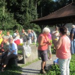 Warum in die Ferne schweifen, wenn das Schöne liegt so nah. Der Genießerpfad vor der Haustür Villingens macht seinem Namen alle Ehre. Genuß pur. Zu Beginn der Wanderung am Bahnhöfle Unterkirnach lud WF Wilfried die 26 Wanderer anlässlich seines 75. Geburtstages im Wald zur Trossinger Morgensupp ein. Gewandert wurde anschliessend auf weichen Waldböden, allerdings musste auf die Wurzeln geachtet werden. Heidelbeersträucher verleiten zum Naschen. Schattige Waldwege führen vorbei am 12 m hohen Uhufelsen. An der „Forelle“ liefen die Wanderer mit leichtem Anstieg hinauf zum Gasthaus Breitbrunnen. Dort machte die Gruppe Mittagspause. Danach führte der Weg weiter auf abwechslungsreichen Waldpassagen zum Wildgehege Salvest. Das letzte Stück gingen die Teilnehmer auf dem Schwarzwald-Jura-Bodensee Weg und Römerweg. Die tiefen Furchen im einstigen Handelsweg stammen aus dem Mittelalter. Der 12 km-lange Genießerpfad fand bei Allen großen Anklang.
