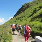 Bei schönem Sommerwetter starteten 30 Teilnehmer zur Fahrt in die schweizer Flumserberge. Nach einer kurzen Kaffee-Brezel-Pause an der Autobahn brachte uns der Bus an die Talstation Tannenheim zur Gondelfahrt auf die Prodalp und weiter mit dem 8-er-Sessellift hinauf zum Prodkamm 1939 m. Von der Gondel aus hatten wir eine gigantische Sicht auf den Walensee und die Churfirsten. Gewandert wurde auf meist ebenen Wegen mit schöner Aussicht auf den Spitzmeilen 2.500 m zur Bergstation Maschgenkamm 2020 m. Gruppe 1 mit 14 Personen – darunter 3 Wanderer von der Bergsteigergruppe – verfehlte anfangs den richtigen Weg und musste dann einen schwierigen alpinen Abstieg bewältigen. Auf dem Maschgenkamm trafen sich dann beide Gruppen wieder. Gemeinsam ging es um den Ziger herum. Am imposanten Sächsmoor-Massiv 2196 m – immer die Churfirsten vor Augen – marschierten wir nach Chrüzen. Dort trennten sich die Gruppen nochmals. Gruppe 1 nahm den Wirtschaftsweg hinab – vorbei an der Alp Grueb zum Seebenalpsee 1600 m – und weiter abwärts mit Blick auf den Walensee über den Winkelzahn, Molseralp zur Talstation Tannenboden 1400 . Gruppe 2 bevorzugte den angenehmen Höhenweg zurück zur Bergstation und fuhr mit der Gondel bzw. Sessellift wieder hinunter. Ein paar schwarze Wolken am Himmel konnten uns nichts mehr anhaben. Im Sonne-Wolken-Spiel verfärbten sich Berge und Almen. Mit dem Bus fuhren wir zur naheliegenden Talstation Tannenboden, wo Gruppe 1 bei einem kühlen Bierchen auf uns wartete. Nach einer längeren Heimfahrt machten wir unseren Abschluß in Behla. Alle waren sich einig: war das eine tolle Bergtour – trotz der großen Anstrengung – .