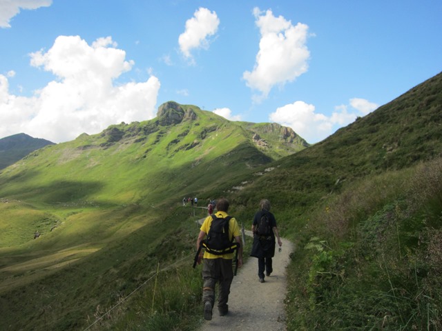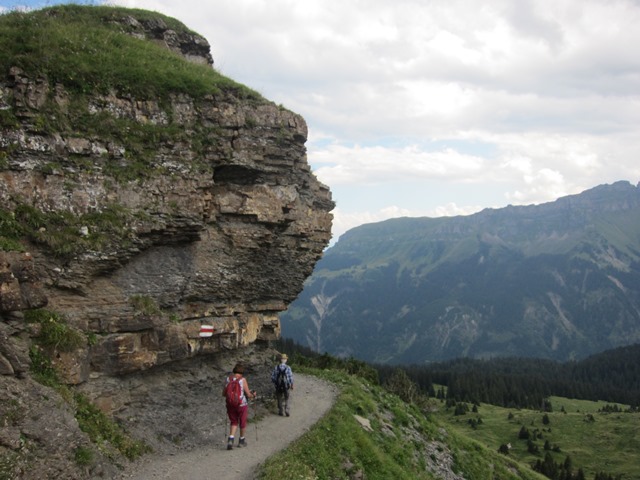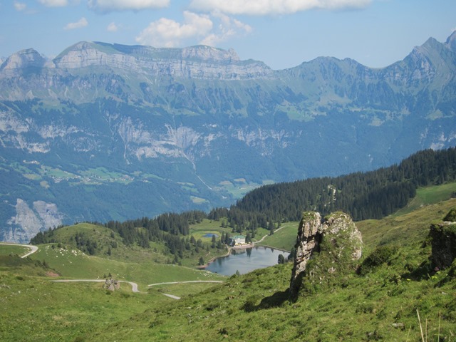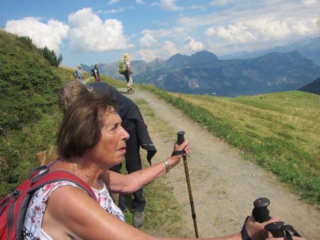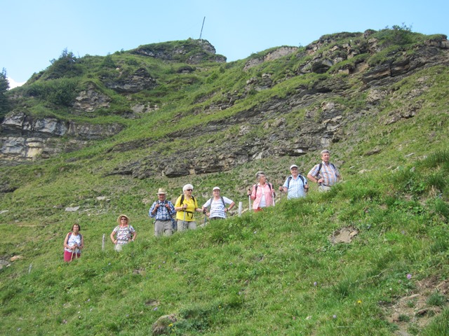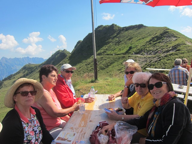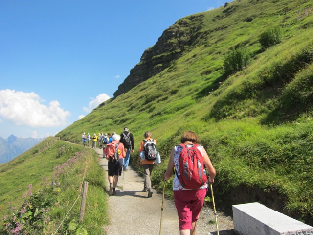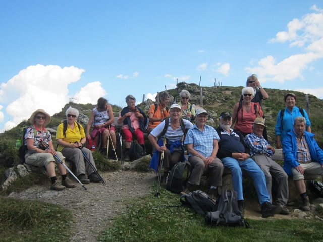Bei schönem Sommerwetter starteten 30 Teilnehmer zur Fahrt in die schweizer Flumserberge. Nach einer kurzen Kaffee-Brezel-Pause an der Autobahn brachte uns der Bus an die Talstation Tannenheim zur Gondelfahrt auf die Prodalp und weiter mit dem 8-er-Sessellift hinauf zum Prodkamm 1939 m. Von der Gondel aus hatten wir eine gigantische Sicht auf den Walensee und die Churfirsten. Gewandert wurde auf meist ebenen Wegen mit schöner Aussicht auf den Spitzmeilen 2.500 m zur Bergstation Maschgenkamm 2020 m. Gruppe 1 mit 14 Personen – darunter 3 Wanderer von der Bergsteigergruppe – verfehlte anfangs den richtigen Weg und musste dann einen schwierigen alpinen Abstieg bewältigen. Auf dem Maschgenkamm trafen sich dann beide Gruppen wieder. Gemeinsam ging es um den Ziger herum. Am imposanten Sächsmoor-Massiv 2196 m – immer die Churfirsten vor Augen – marschierten wir nach Chrüzen. Dort trennten sich die Gruppen nochmals. Gruppe 1 nahm den Wirtschaftsweg hinab – vorbei an der Alp Grueb zum Seebenalpsee 1600 m – und weiter abwärts mit Blick auf den Walensee über den Winkelzahn, Molseralp zur Talstation Tannenboden 1400 . Gruppe 2 bevorzugte den angenehmen Höhenweg zurück zur Bergstation und fuhr mit der Gondel bzw. Sessellift wieder hinunter. Ein paar schwarze Wolken am Himmel konnten uns nichts mehr anhaben. Im Sonne-Wolken-Spiel verfärbten sich Berge und Almen. Mit dem Bus fuhren wir zur naheliegenden Talstation Tannenboden, wo Gruppe 1 bei einem kühlen Bierchen auf uns wartete. Nach einer längeren Heimfahrt machten wir unseren Abschluß in Behla. Alle waren sich einig: war das eine tolle Bergtour – trotz der großen Anstrengung – .
