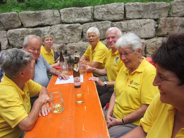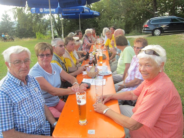 Bei strahlendem Sonnenschein fuhren wir mit 5 vollbesetzten PKW‘s und 23 Teilnehmern nach Deilingen. Auf dem Waldspielplatz wartete schon der Deilinger Wanderführer Rudi Gut mit seiner Frau Christa auf uns. Gewandert wurde auf dem Panoramaweg zur Lützelalbsteige. Nach einem kräftigen Anstieg zur Lützelalb haben wir die 1000er-Höhe beinahe geschafft. An der Deilinger Hütte beim Fernmeldeturm machten wir unsere Mittagspause. Dort hatte man einen herrlichen Blick auf den Rottweiler Turm. Sogar die Windräder vom Schwarzwald-Baar-Center waren zu sehen. Nach der Mittagspause wanderten wir entlang am Trauf zum ersten Tausender, dem Montschenloch. Mit Berg heil ! begrüsste uns der Wehinger Franz mit Handschlag. Für längere Zeit war dort 1945 eine amerikanische Funkstelle stationiert – einer Enklave innerhalb der französischen Besatzungszone -. Weiter ging’s zum zweiten Tausender, dem Ortenberg (dort fehlten allerdings noch 5 m zum Tausender). Mit dem Rainen und dem Bol hatten wir fast alle „Tausender“ bestiegen ! Den schönen Wandertag liessen wir bei der Deilinger Hütte am Turm ausklingen.
