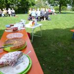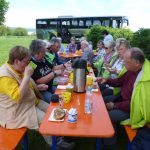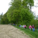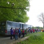 Mit einer großen Wanderschar von 47 Teilnehmern fuhren die Trossinger Albvereinler am Muttertag an den Bodensee. Der Bus war beladen mit Tischen, Bänken und Kuchen für die Mütter und natürlich auch für die Väter !. Die Organisation hoffte auf gutes Wetter, da der Muttertagskaffee im Freien vorgesehen war. Gewandert wurde im Gänsemarsch auf dem Naturpfad durch lichtgrüne Laubwälder eine gute Stunde auf dem Schienerberg- kamm mit Blick auf den Bodensee. Der Weg führte nun bergab auf teils matschigen Wegen durch den Tobel in Richtung Wasserturm Horn, wo unser Busfahrer alles für den Muttertagskaffee vorbereitete. Unglücklicherweise verlor der Schwanz der Gruppe die Vorauslaufenden. Auf dem letztem Stück zum Wasserturm waren wir dann wieder zusammen.