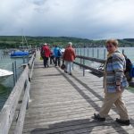 Nach der ausgiebigen Kaffeepause am Wasserturm zogen schwarze Wolken auf. Ein Teil der Gruppe zog es vor mit dem Bus nach Gaienhofen zu fahren. Die Unermüdlichen liessen sich vom Wetter nicht abhalten und wanderten nach Gaienhofen. Dort hatten die Wanderer die Wahl entweder mit dem Schiff oder mit dem Bus nach Hemmenhofen bzw. Stein am Rhein zu fahren. Auf der einstündigen Schifffahrt war es sehr stürmisch und man konnte ein tolles Wolkenspiel beobachten. In Stein am Rhein fanden sich alle wieder ein. Den Abschluß machten die Wanderer in Fürstenberg im Rössle, wo der rote Teppich „für uns“ auslag.