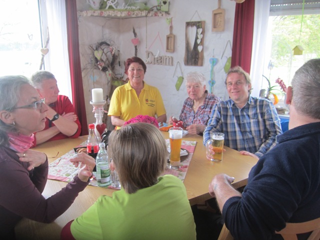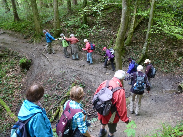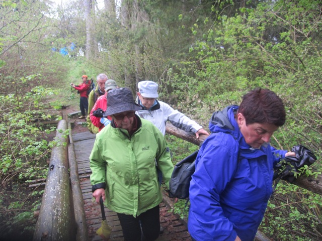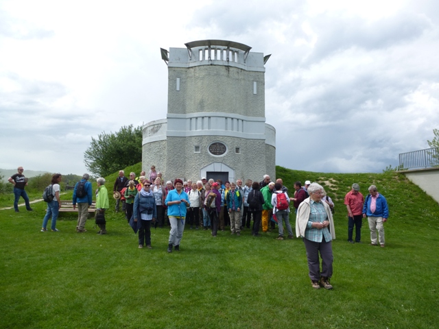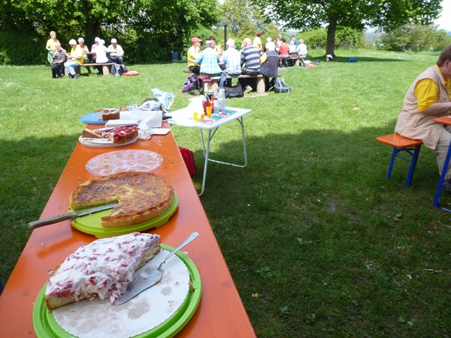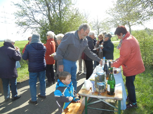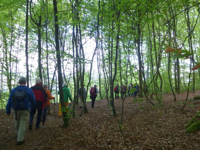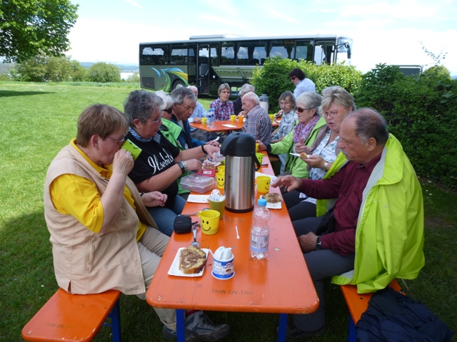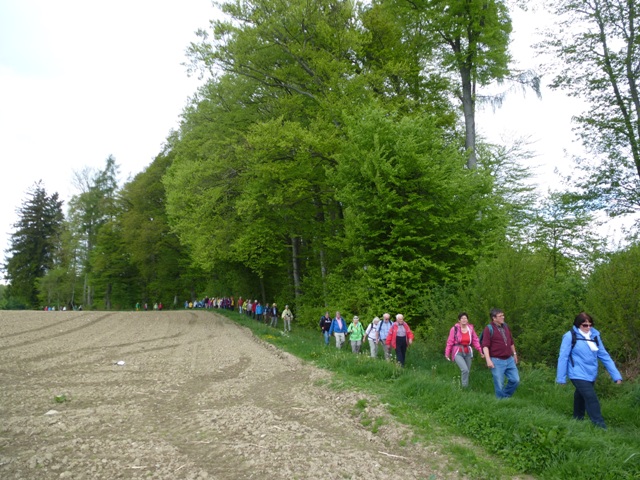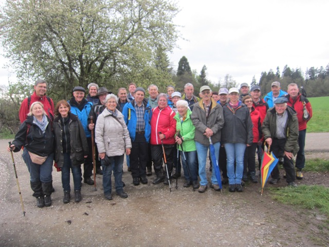 Mit einer großen Wanderschar von 47 Teilnehmern fuhren die Trossinger Albvereinler am Muttertag an den Bodensee. Der Bus war beladen mit Tischen, Bänken und Kuchen für die Mütter und natürlich auch für die Väter !. Die Organisation hoffte auf gutes Wetter, da der Muttertagskaffee im Freien vorgesehen war. Gewandert wurde im Gänsemarsch auf dem Naturpfad durch lichtgrüne Laubwälder eine gute Stunde auf dem Schienerberg- kamm mit Blick auf den Bodensee. Der Weg führte nun bergab auf teils matschigen Wegen durch den Tobel in Richtung Wasserturm Horn, wo unser Busfahrer alles für den Muttertagskaffee vorbereitete. Unglücklicherweise verlor der Schwanz der Gruppe die Vorauslaufenden. Auf dem letztem Stück zum Wasserturm waren wir dann wieder zusammen.