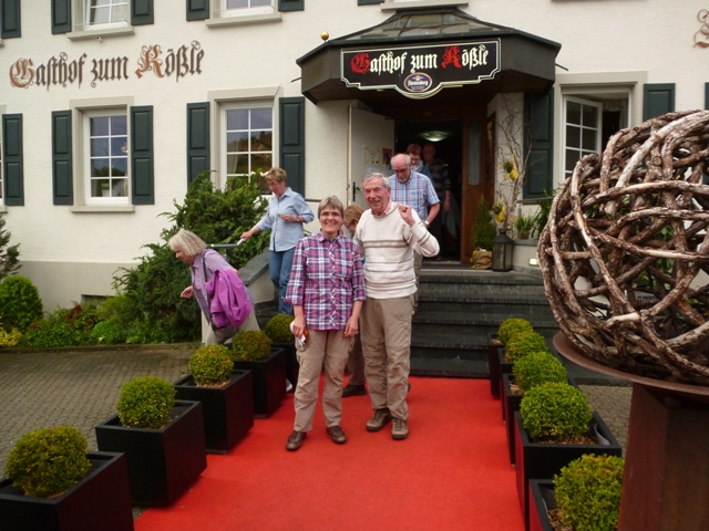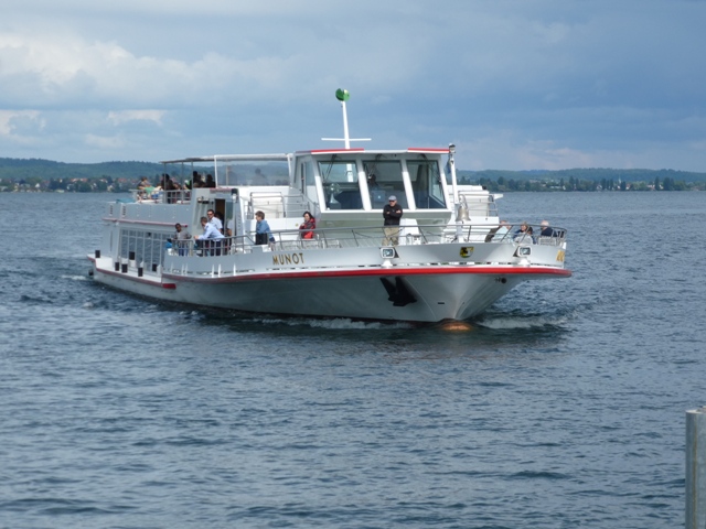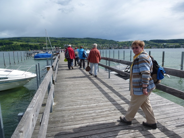 Nach der ausgiebigen Kaffeepause am Wasserturm zogen schwarze Wolken auf. Ein Teil der Gruppe zog es vor mit dem Bus nach Gaienhofen zu fahren. Die Unermüdlichen liessen sich vom Wetter nicht abhalten und wanderten nach Gaienhofen. Dort hatten die Wanderer die Wahl entweder mit dem Schiff oder mit dem Bus nach Hemmenhofen bzw. Stein am Rhein zu fahren. Auf der einstündigen Schifffahrt war es sehr stürmisch und man konnte ein tolles Wolkenspiel beobachten. In Stein am Rhein fanden sich alle wieder ein. Den Abschluß machten die Wanderer in Fürstenberg im Rössle, wo der rote Teppich „für uns“ auslag.