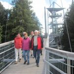 Die 44-köpfige Wandergruppe, die immer einen guten Draht zum Wettergott hat und es an beiden Tagen keinen Tropfen regnete, verbrachten den ersten Tag zunächst mit einem Halt in Altshausen, dem Sitz der herzoglichen Familie von Württemberg. Der imposante Schlosspark mit Skulpuren von Herzogin Diane und einer Statue von „Hermann der Lahme“, der im Jahre 1013 als Sohn des Grafen mit schwersten körperlichen Behinderungen geboren wurde und mit geistiger Größe in Astronomie, Mathematik ausglich und die Intervall-Notenschrift entwarf sowie „Salve Regina“ komponierte, fand Bewunderung. Auch das „heilige Grab„ aus dem Jahre 1783 bot eine besondere Sehenswürdigkeit. Dieses Meisterwerk aus der Barockzeit, das viele Jahre auf Dachböden verbannt war, hat ein Förderverein im Jahre 2001 zur Rettung gegründet. Durch das große Entgegenkommen von Herzog Carl von Württemberg , konnte dieses Meisterwerk in einer dafür extra erbauten Kapelle besichtigt werden. Gestärkt mit einem zweiten Frühstück am Bus mit Brezeln, Sekt und Kaffee, die von den beiden Geburtstagskindern Ilse und Gisela gestiftet wurden, ging es weiter nach Wolfegg. Dort hatte jeder Zeit zur freien Verfügung mit Gelegenheit zur Besichtigung der Barockkirche, die Orangerie. Nachmittags stand die 4-stündige Wanderung unter dem Motto „Vom Barock ins Mittelalter“ von Wolfegg nach Waldburg auf dem HW 4 auf dem Programm. Die Organisatoren nahmen das Angebot von SAV-Obmann in Wolfegg gerne an, die Trossinger Wandergruppe zu begleiten. Das Wetter gab sein bestes und so hatten die Wanderer einen schönen Ausblick auf das Alpenvorland. Für die Kurzwanderer wurde das Angebot zur Abkürzung des Weges an zwei Haltestellen gerne angenommen. Leider konnte die imposante Burg Waldburg wegen Renovierung nicht besichtigt werden. Nach der Wandertour fuhr der Bus nach Wolfegg-Altann, wo die Gruppe ihre mehr als großzügigen Zimmer mit begehbaren Bädern im Landhotel Allgäuer Hof bezog. Nach einem reichhaltigen Bufett begann der gemütliche Teil. Die Musikanten Ernst Pfister und Helga Birk brachten großartige Stimmung mit ihrem Akkordeon in den Saal und es wurde viel gesungen, geschunkelt und getanzt. Hotelgäste einer Rollstuhlfahrer-Gruppe aus Ulm genossen mit uns den schönen Abend. Am nächsten Morgen stand die Wanderung „Auf den Spuren der Schwabenkinder“ auf dem Programm. Auf dem 7,5 km langen Weg erfuhren die Wanderer auf den Hinweistafeln an den Bauernhöfen viel Wissenswertes über die Kinder, die im 19. Jhd aus dem Vorarlberg, Graubünden und Tirol nach Ravensburg kamen und dort auf dem Kindergesindemarkt an oberschwäbische Bauern vermittelt wurden. Anschliessend besuchten die Teilnehmer das Bauernmuseum in Wolfegg. Dort war am Sonntag ein großes Eselstreffen. In der Ausstellung erfuhren die Wanderer noch mehr über das Thema Schwabenkinder. Am Nachmittag fuhr die Gruppe nach Scheidegg. Höhepunkt der zweitägigen Tour war ein Rundgang auf dem Sky-Walk (Baumwipfelfad) mit fantastischer Aussicht auf die teils schneebedeckten Alpen und den Bodensee. Die Heimfahrt erfolgte entlang des Bodensees mit der Schlußeinkehr im Jägerhof in Gebhardweiler. Die Organisatoren ernteten viel Lob über den 2-tg. Wanderausflug.