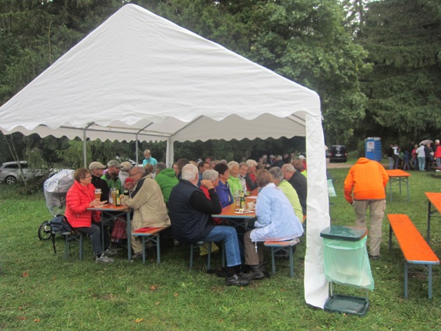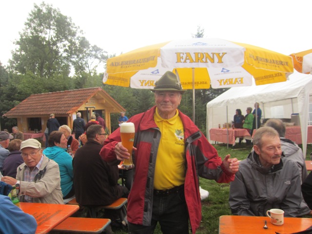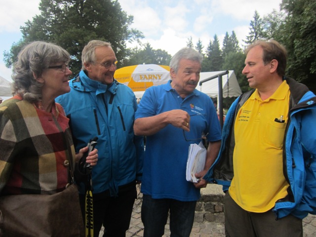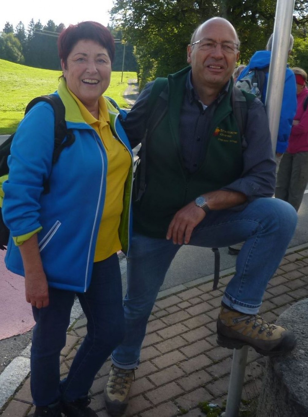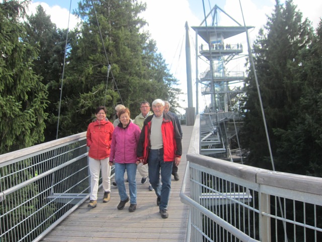 Die 44-köpfige Wandergruppe, die immer einen guten Draht zum Wettergott hat und es an beiden Tagen keinen Tropfen regnete, verbrachten den ersten Tag zunächst mit einem Halt in Altshausen, dem Sitz der herzoglichen Familie von Württemberg. Der imposante Schlosspark mit Skulpuren von Herzogin Diane und einer Statue von „Hermann der Lahme“, der im Jahre 1013 als Sohn des Grafen mit schwersten körperlichen Behinderungen geboren wurde und mit geistiger Größe in Astronomie, Mathematik ausglich und die Intervall-Notenschrift entwarf sowie „Salve Regina“ komponierte, fand Bewunderung. Auch das „heilige Grab„ aus dem Jahre 1783 bot eine besondere Sehenswürdigkeit. Dieses Meisterwerk aus der Barockzeit, das viele Jahre auf Dachböden verbannt war, hat ein Förderverein im Jahre 2001 zur Rettung gegründet. Durch das große Entgegenkommen von Herzog Carl von Württemberg , konnte dieses Meisterwerk in einer dafür extra erbauten Kapelle besichtigt werden. Gestärkt mit einem zweiten Frühstück am Bus mit Brezeln, Sekt und Kaffee, die von den beiden Geburtstagskindern Ilse und Gisela gestiftet wurden, ging es weiter nach Wolfegg. Dort hatte jeder Zeit zur freien Verfügung mit Gelegenheit zur Besichtigung der Barockkirche, die Orangerie. Nachmittags stand die 4-stündige Wanderung unter dem Motto „Vom Barock ins Mittelalter“ von Wolfegg nach Waldburg auf dem HW 4 auf dem Programm. Die Organisatoren nahmen das Angebot von SAV-Obmann in Wolfegg gerne an, die Trossinger Wandergruppe zu begleiten. Das Wetter gab sein bestes und so hatten die Wanderer einen schönen Ausblick auf das Alpenvorland. Für die Kurzwanderer wurde das Angebot zur Abkürzung des Weges an zwei Haltestellen gerne angenommen. Leider konnte die imposante Burg Waldburg wegen Renovierung nicht besichtigt werden. Nach der Wandertour fuhr der Bus nach Wolfegg-Altann, wo die Gruppe ihre mehr als großzügigen Zimmer mit begehbaren Bädern im Landhotel Allgäuer Hof bezog. Nach einem reichhaltigen Bufett begann der gemütliche Teil. Die Musikanten Ernst Pfister und Helga Birk brachten großartige Stimmung mit ihrem Akkordeon in den Saal und es wurde viel gesungen, geschunkelt und getanzt. Hotelgäste einer Rollstuhlfahrer-Gruppe aus Ulm genossen mit uns den schönen Abend. Am nächsten Morgen stand die Wanderung „Auf den Spuren der Schwabenkinder“ auf dem Programm. Auf dem 7,5 km langen Weg erfuhren die Wanderer auf den Hinweistafeln an den Bauernhöfen viel Wissenswertes über die Kinder, die im 19. Jhd aus dem Vorarlberg, Graubünden und Tirol nach Ravensburg kamen und dort auf dem Kindergesindemarkt an oberschwäbische Bauern vermittelt wurden. Anschliessend besuchten die Teilnehmer das Bauernmuseum in Wolfegg. Dort war am Sonntag ein großes Eselstreffen. In der Ausstellung erfuhren die Wanderer noch mehr über das Thema Schwabenkinder. Am Nachmittag fuhr die Gruppe nach Scheidegg. Höhepunkt der zweitägigen Tour war ein Rundgang auf dem Sky-Walk (Baumwipfelfad) mit fantastischer Aussicht auf die teils schneebedeckten Alpen und den Bodensee. Die Heimfahrt erfolgte entlang des Bodensees mit der Schlußeinkehr im Jägerhof in Gebhardweiler. Die Organisatoren ernteten viel Lob über den 2-tg. Wanderausflug.