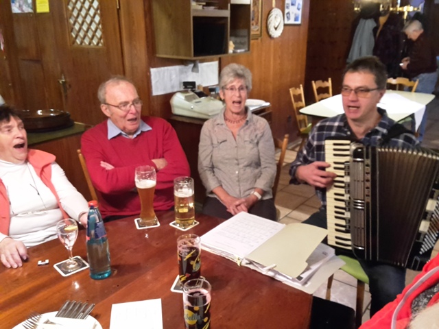 In der Rainstrasse trafen die Wanderer Franz Samson und fragten ihn, ob er nicht in die Germania kommen möchte. Tatsächlich kam er mit seinem Akkordeon und machte gute Stimmungsmusik. Es wurde noch viel gesungen und geschunkelt und getanzt.