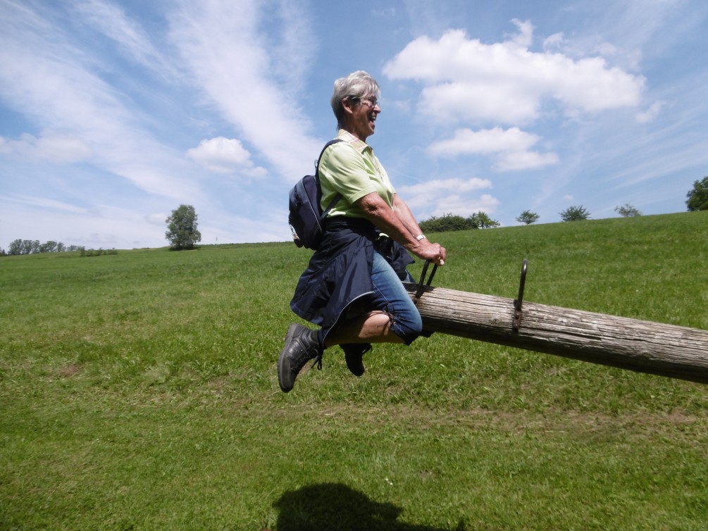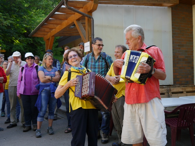 Auf dem letzten Stück ging es vorbei am Spatenbaum, große Tanne zurück zum Ausgangspunkt Naturfreundehaus. Bei gemütlichem Beisammensein unter den Akkordeonklängen von Franz Samson wurde noch viel getanzt.