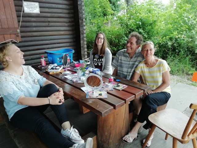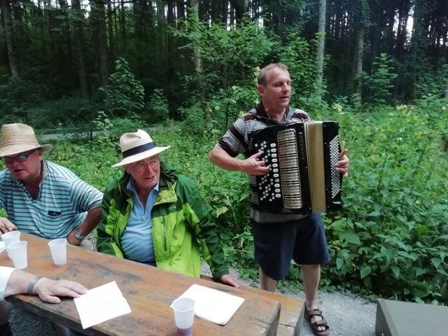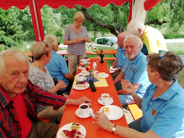 Die Trossinger Albvereinler luden zum traditionellen Sommerfest an den Gaugersee ein. Bei strahlendem Sonnenschein konnte die Vorsitzende Anneliese Burgbacher viele Gäste begrüssen. Die benachbarten Ortsgruppen aus Aldingen, Aixheim, Talheim, Spaichingen, Esslingen kamen zahlreich teils per Rad, zu Fuß und im Auto in ihren farbigen Albvereins-Poloshirts an den Gaugersee. Seit 1985 verbringt die Ortsgruppe ihr Sommerfest am Gaugersee und auch das letzte Mal. Zuvor fanden diese Feste im Bodenholz und noch früher am Schießhaus (b. Naturfreundehaus) statt. Der Aufwand für den halben Tag ist zu groß. Die Helfer werden alle älter. Eine neue Location wurde gefunden und der Verein wird weiter seine Sommerfeste feiern. Ein reichhaltiges Kuchenbufett wartete auf die Gäste sowie der beliebte Schweinehals mit Kartoffelsalat und Grillwürsten. Musikalisch unterhielt Franz Samson die Gäste. Die kleinen Gäste wurden fantasievoll geschminkt. An dieser Stelle gilt der Dank all den vielen Helfern beim Auf- und Abbau und den vielen Kuchenspendern. Ohne sie wäre ein solches Fest nicht zu bewältigen. Bis spät am Abend wurde noch gefeiert.