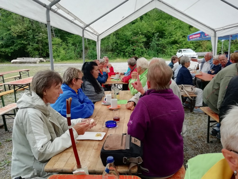 15 Wanderer trafen sich am Bahnhof zur Bahnfahrt auf den Staatser. Von dort ging es auf dem schönen Neckartalpfad zum Deisslinger Albvereinsfest ins Neckartäle.