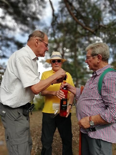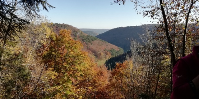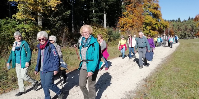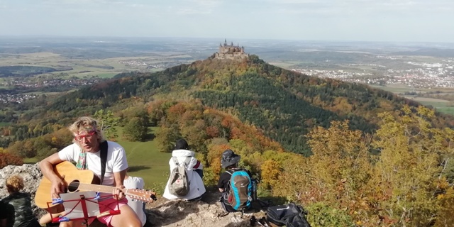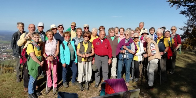 Zur letzten Wanderbusausfahrt in diesem Jahr ging es für die 33 Teilnehmer bei strahlend schönem Herbstwetter auf die Schwäb. Alb. Wieder hatten die Trossinger ein großes Glück mit dem Wetter. Gewandert wurde ab Parkplatz Stich b. Onstmettingen nach einem kurzen Anstieg hinauf zum Heiligenkopf und weiter durch die sonnendurchfluteten Laubwälder am Trauf entlang über den Blasenberg, wo wir den ersten Blick auf den Hohenzollern hatten, zum Zollernsteighof. Viele Wanderer waren an diesem schönen Herbsttag unterwegs. Der Busfahrer wartete zur Vesperpause mit Kaffee, Kuchen und Wein auf uns. Die Abkürzer hatten nun die Möglichkeit zum Nägelehaus zu wandern. Für die anderen ging es weiter zum Zeller Horn. Was für ein schöner Ausblick auf den Hohenzollern. Ein Musikant spielte Gitarre und gleichzeitig Mundharmonika und erfreute so die Wanderer. Es stellte sich heraus, daß der Musiker den 5. Platz damals beim Trossinger Skispringen belegte und eine Hohner-Mundharmonika geschenkt bekam. Auf wurzeligen Pfaden ging es nun am Trauf und Zollerngraben entlang weiter zum Hangenden Stein. Zwischendurch gab ein neuer Wanderfreund seinen „Einstand“ . Im Rucksack schleppte er eine gekühlte XXL-Rosewein-Flasche mit sich, zur Freude der Wanderschar. Die Championsleague Gruppe wanderte noch über Stocken zurück zum Nägelehaus, wo sich alle zur Einkehr trafen. Unter den Akkordeonklängen von Helga Birk wurden noch ein paar Wanderlieder gesungen. Glücklich und zufrieden über den schönen Wandertag kehrten alle wohlbehalten zurück.