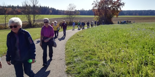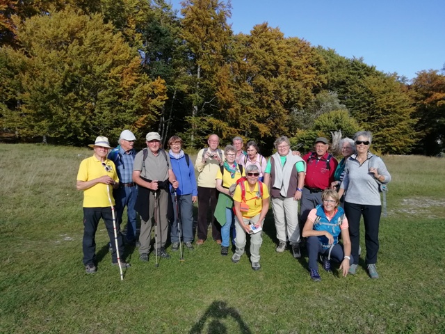 Zur Wanderung auf den RISI trafen sich 40 Teilnehmer zur Bildung von Fahrgemeinschaften am Bahnhof. Das Wetter konnte nicht schöner sein. Herbstwetter mit viel Sonnenschein bescherte uns der Wettergott bei unserer letzten Wanderung. Gewandert wurde über den Russberg vorbei an der ehem. Burg Wallenburg zur Einkehr im Waldeck auf dem RISI. Nach dem leckeren Essen spielte unsere Helga noch ein paar Wanderlieder zum Abschluss.