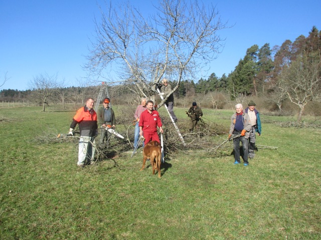 Großer Arbeitseinsatz auf der Streuobstwiese am 7.4.2018